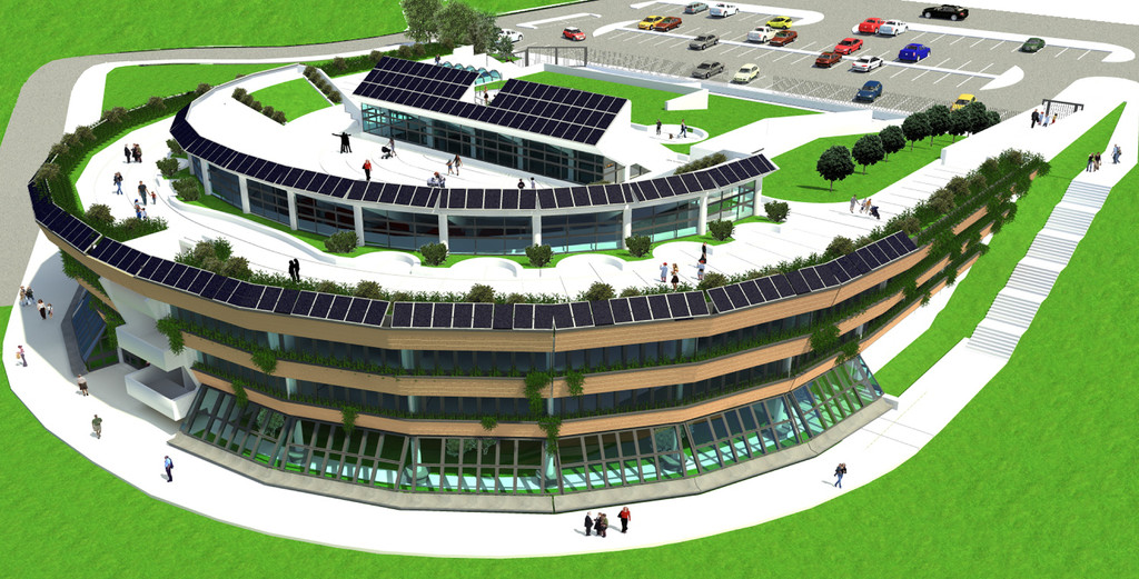Il progetto è stato determinato principalmente da alcuni fattori basilari: il contesto in cui inserire il plesso scolastico, l’orientamento e la sezione del terreno. Il contesto, con una forte suggestione paesaggistica e naturale, affacciato sul Parco di Veio, è stato fondamentale per l’esigenza di conservare l’area il più possibile “godibile” non con un edificio appoggiato sul terreno, ma che ne scaturisse quasi come un suo naturale prolungamento. L’orientamento, prevalentemente a sud, sud-est ha dettato le direttrici principali delle scelte progettuali, prevedendo tutta la parte didattica a sud ,sud-est ed ovest e le zone servizi sul lato nord. La sezione del terreno ha dato origine alla tipologia della scuola non in elevazione ma, rispettando l’orografia del terreno, si entra a quota zero e si scende al livello sottostante. Questo dà luogo a due vantaggi immediati: il primo è un praticamente azzerato impatto ambientale, ed il secondo consiste in un quasi pareggio tra scavi e riporti di terreno. L’organismo architettonico è stato concepito in due parti distinte ed unite da un giunto tecnologico strutturale che saranno definite come corpo sud e corpo nord. L’edificio è stato sempre pensato con l’obiettivo primario di potenziare in modo preponderante la climatizzazione passiva, tendendo al costo “zero” e cercando di ottimizzare al meglio sia la massima insolazione invernale nella parte sud (aule didattiche ed intercicli), sia l’interramento per l’orografia del terreno del lato nord (depositi e locali tecnici), che godrà dei benefici sfruttando l’inerzia termica che garantisce il suolo.